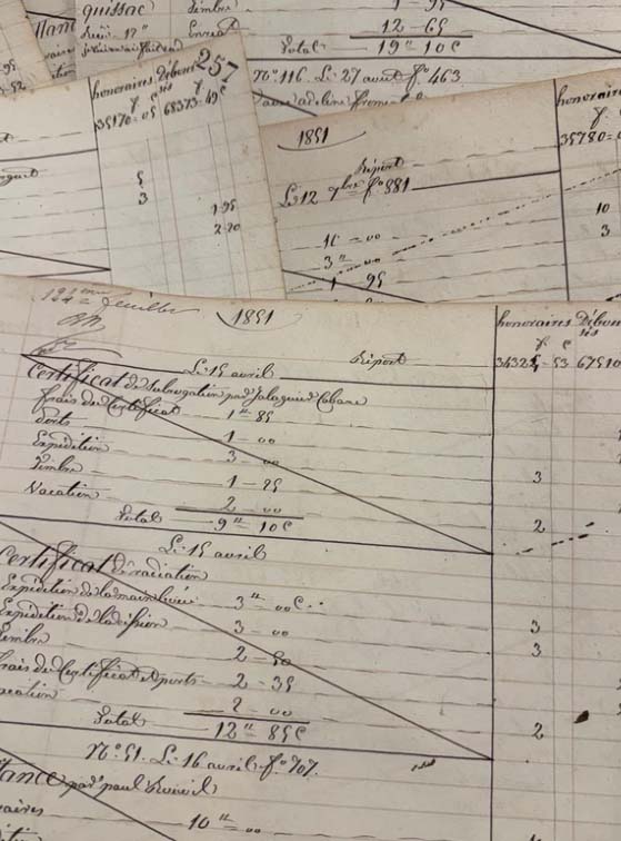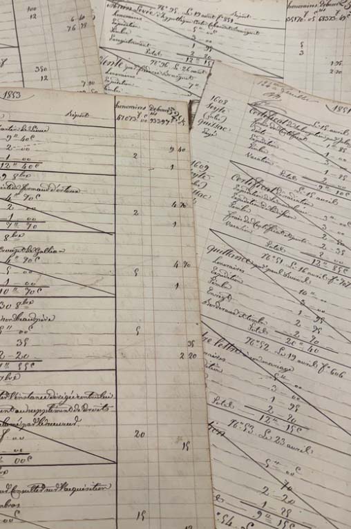 Beautiful large double-sided antique cotton wad French ledger pagesdated in the 1890s. Beautiful paper with fantastic calligraphy.