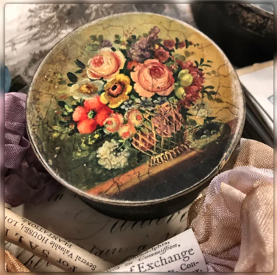 3" French Floral covered reproduction boxes made to look old. Elegant and very usable boxes which are ideal for small items of jewelry, keepsakes and trinkets. They fit neatly on a desk, window sill or dressing table. The round box is 3" in diameter. The oval measures 3.5" x 2.5". You are purchasing one box per purchase.